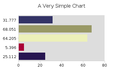 There's not much to this chart. Random data, with mostly default style properties. How does this work? The chart object contains all the logic for creating a chart image. When we call the method "chart.getFileName()" it creates an image and writes it into the cache directory, set with the "writeDirectory" property. We then point to the equivalent URL with an <IMG> tag. Our very simple chart: |