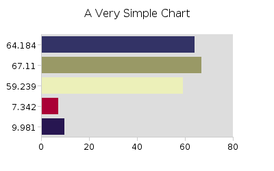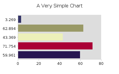 There's not much to this chart. Random data, with mostly default style properties. How does this work? The chart object contains all the logic for creating a chart image. When we call the method "chart.getFileName()" it creates an image and writes it into the cache directory, set with the "writeDirectory" property. We then point to the equivalent URL with an <IMG> tag. Our very simple chart: |