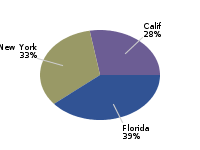 Like the first chart, this pie chart also uses U.S. census data, however this time it is the ethnic breakdown of California. Here we've used an exploded slice to highlight a particular value in our data. In this case we've chosen to explode slice number four, by setting the parameter "explodeSlice"="4". The slice numbering actually starts at 0--you can see the slice number of any slice on the pie by placing your mouse pointer over it. We could also have chosen to explode multiple slices by using the "explodeSlices" parameter, which takes a list of explosion factors for each slice. The explosion factor is how much you want the slice to stick out of the pie. A value of "0" would be no explosion at all, while a value of "0.05" would give you an explosion like the one in this chart. As you can see, there are some very small slices on this chart. By comparing the labels in the first chart to these labels, you can see that the labels have automatically moved around, and some pointers have been extended to make sure the labels don't overlap. We've changed the starting angle of the first slice using the "startDegrees" parameter to make sure the labels fit nicely in the image area, as well as changed the default colors of the pie (using "dataset0Colors") to make colors of the small slices more distinct. The default precision of the percentage labels is 0, meaning that the labels will all be integers like in the first chart. Since there are some very small slices on this chart, the default percentages would be 0. The "percentPrecision" parameter can be used to force a greater decimal precision in your percent labels, as was done here. |
